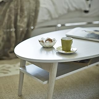 棚付折れ脚テーブル 【直送】 (ホワイト) 幅90 オーバル 楕円形 ローテーブル 折りたたみ 折れ脚 木製 完成品