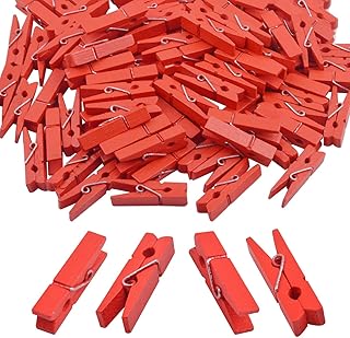 BronaGrand 100個入り ミニ木製クリップ 木製洋服ペグ ミニ洗濯バサミ 写真/紙用 (レッド)