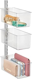 mDesign プラスチック壁取り付け容器 金属製ハンギングバー付き 再配置可能な容器 クローゼットの収納と整理に ベルト、レギンス、靴、財布、スカーフを収納 5インチ 3個セット クリア
