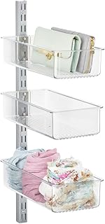 mDesign プラスチック壁取り付け容器 金属製ハンギングバー付き 再配置可能な容器 クローゼットの収納と整理に ベルト、レギンス、靴、財布、スカーフを収納 高さ3インチ 3個セット クリア
