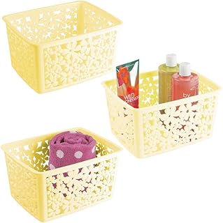 mDesign バスルームまたはシャワールーム用バスバスケット 3個セット – プラスチック収納バスケット バスルームアクセサリー シャンプー、化粧品、その他の美容製品 – ライトイエロー