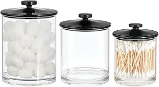 mDesign プラスチックラウンドバスルーム化粧台カウンタートップストレージオーガナイザー 薬瓶キャニスタージャー 綿棒 丸 ボール 化粧スポンジ バスソルト用 3個セット S/M/L ブラック/クリア