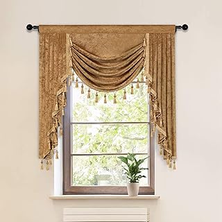 ブロンズ 厚手 シェニール織 ウォーターフォール バランス リビングルーム ラグジュアリー ウィンドウ カーテン バランス 寝室用 (ブロンズ 幅39インチ パネル1枚)