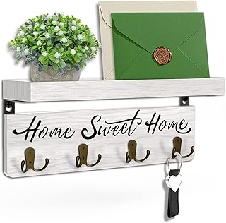 Labcosi キー&メールホルダー 壁用 素朴 玄関 メールオーガナイザー ラック 4つのキーフック付き 玄関 廊下 オフィス キッチン用