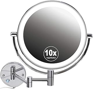 Jolitac 8.5インチ LED メイクアップミラー 壁マウント 7X/10倍 クローム 個人用メイクアップミラー 丸型 両面スイベルタッチ 調節可能なライト 洗面化粧台ミラー ベッドルーム バスルーム 10X Magnification クリア