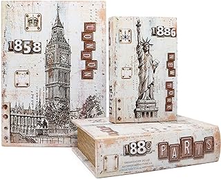 Jolitac 装飾ブックボックス 世界地図パターン アンティークブック 見えないボックス 磁気カバー付き 人工木 3個セット 収納セット (建築)