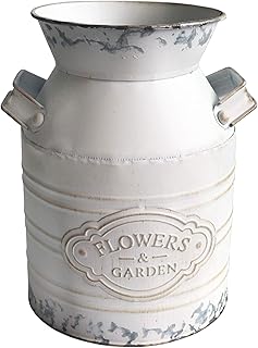 MISIXILE ヴィンテージファームハウス花瓶 メタル亜鉛メッキミルク缶 シャビーシックなフラワージャグ花瓶 カントリー風装飾バケツ ホームインテリア プランター花瓶 ハンドル付き