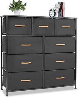 Bigroof ドレッサー 引き出し付き ストレージオーガナイザー ファブリック引き出し 寝室 バスルーム用 スチールフレーム 木製トップ 衣類 ブランケット ぬいぐるみ おもちゃ