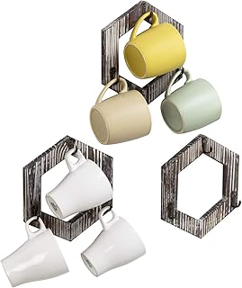 MyGift 3フック 素朴 ブラウン トーチド 木製 幾何学的 六角形 壁取り付け コーヒーマグ ホルダー 収納ラック 3個セット