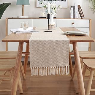 Enmolove 農家織テーブルランナー ハンドメイドタッセル付き (ウェーブパターン-13インチ x 70.86インチ)