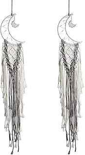 Enmolove 壁掛けタペストリー 2個 マクラメ 月 ドリームキャッチャー ボーホー ホーム装飾 ハンドメイド タッセル アート クラフト リビングルーム ベッドルーム オフィス用