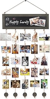 Bikoney フォトフレーム コラージュ 写真吊り下げディスプレイ 木製素朴なフレーム 黒板とクリップ30個付き 風化グレー