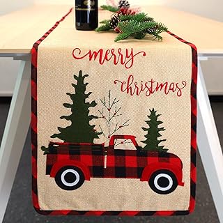 Enmolove クリスマステーブルランナー チェック柄テーブルランナー 感謝祭 クリスマス 毎日のデコレーションに (70.86インチ x 13.78インチ 車&クリスマスツリー)