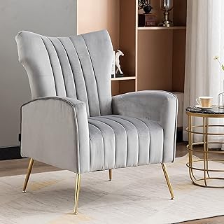Altrobene ソファー 1人掛け ハイバック ソファ ベルベット モダン カウチ 一人暮らし 座り心地が良い 組み立ても簡単 リラックスソファ グレー