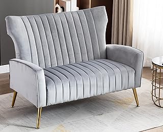 Altrobene ソファー 2人掛け ハイバック ソファ ベルベット モダン カウチ 一人暮らし 座り心地が良い 組み立ても簡単 リラックスソファ グレー