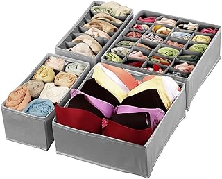 Magicfly 収納ボックス 折り畳み 4点セット 引き出し仕切り 不織布 下着・靴下・小物収納 グレー